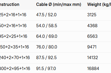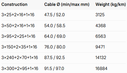 Semi-conductive layers: Inner EPR semi-conductive screen plus outer easy-strip NBR layer for reliable field control and straightforward on-site terminations.