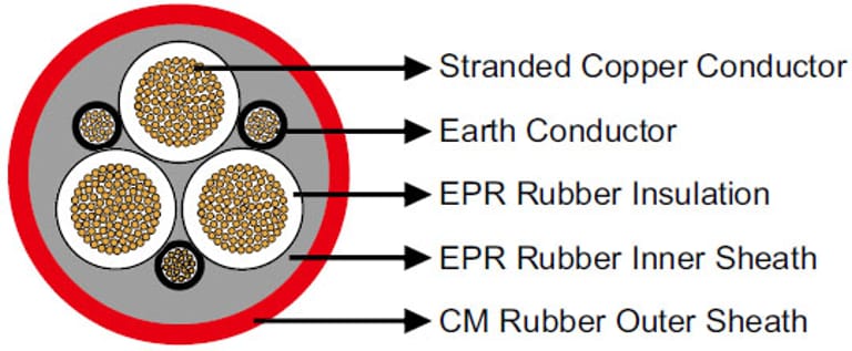 Durability – Outer sheath resists oil, abrasion, ozone, and UV exposure.
