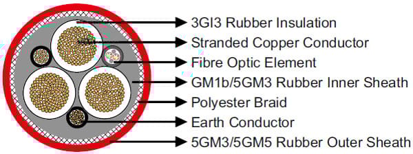 Outer Sheath | Rubber type 5GM3/5GM5, flame retardant and oil resistant. |