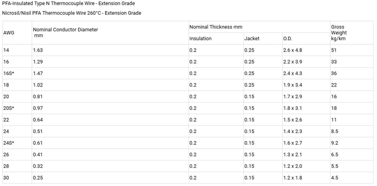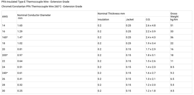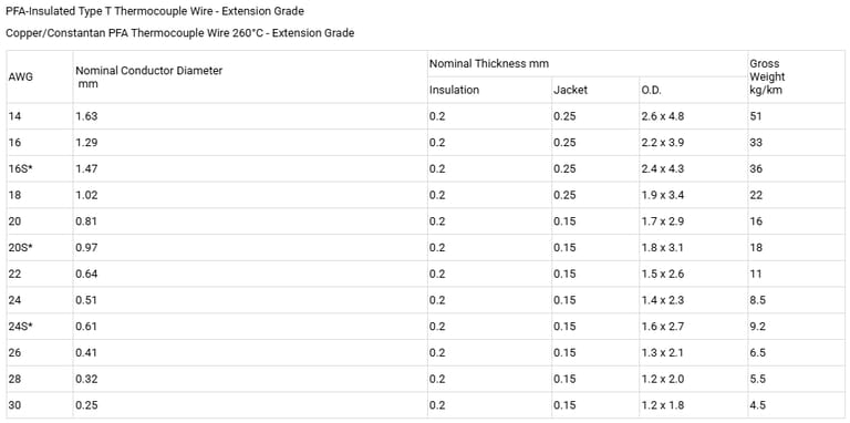 PFA-Insulated Type K Thermocouple Wire - Extension Grade