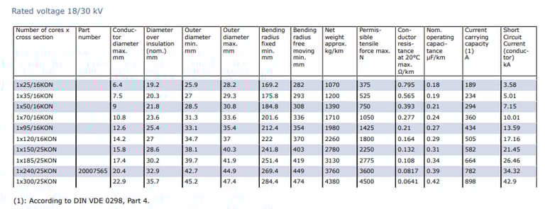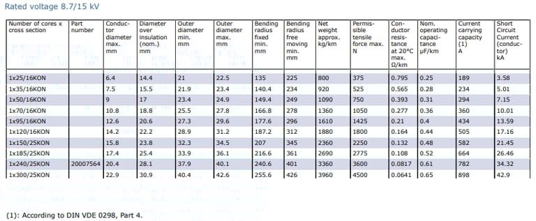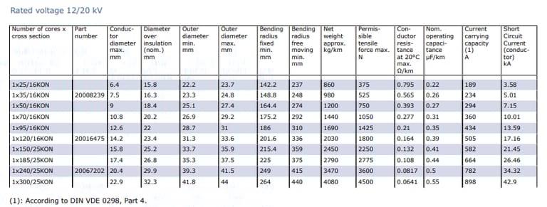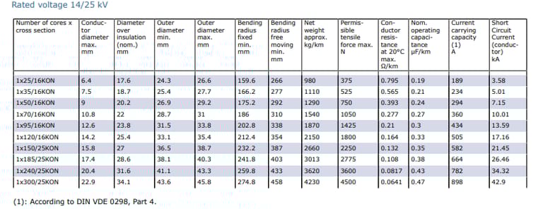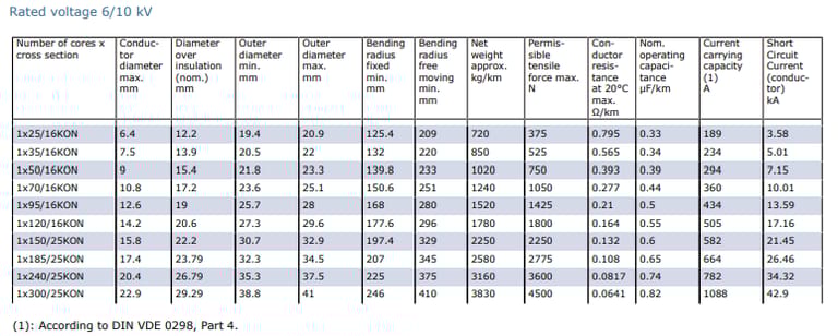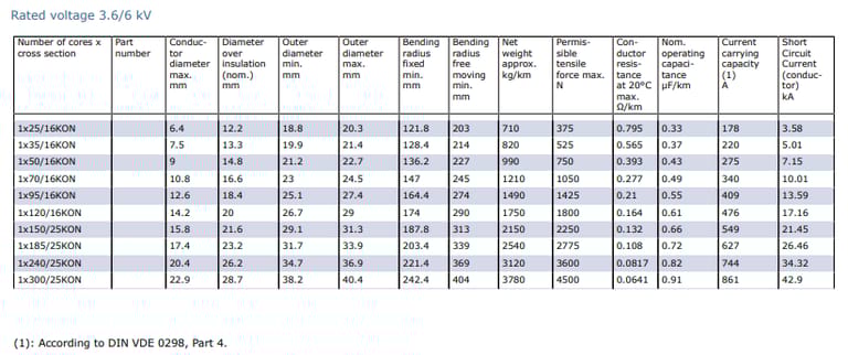 Application | Single-core cables used for short lengths, e.g., connecting switchgear cubicles and mobile transformer substations to overhead lines. Protect against excessive mechanical stresses during laying and operation. Follow DIN VDE 0298-3 conditions. |