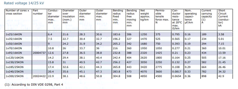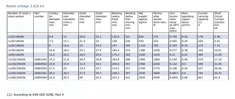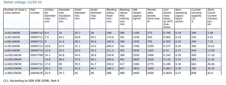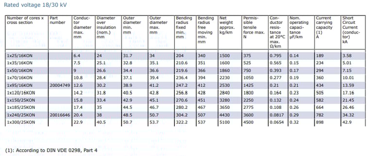Application | Used in short lengths, e.g., for connecting switchgear cubicles and mobile transformer substations to overhead lines. Protect against excessive mechanical stresses during laying and operation. General conditions in DIN VDE 0298-3 apply. |