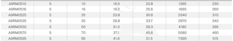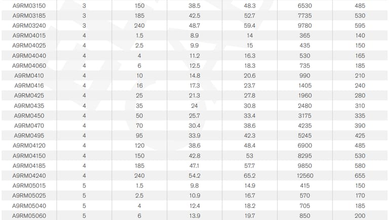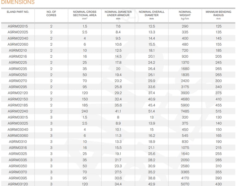 NOMINAL CROSS SECTIONAL AREA (mm²) | CURRENT CARRYING CAPACITY (Amps) - 2 Core Cables | CURRENT CARRYING CAPACITY (Amps) - 3, 4, and 5 Core Cables | VOLTAGE DROP (V/A/km) |