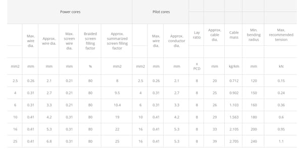 Electrically driven machines, movable electric apparatus in hazardous areas. For small pumps, fans, drills 2.5 mm2. For shuttle cars 16 mm2. Types 16, 25 mm2 suitable for reeling.