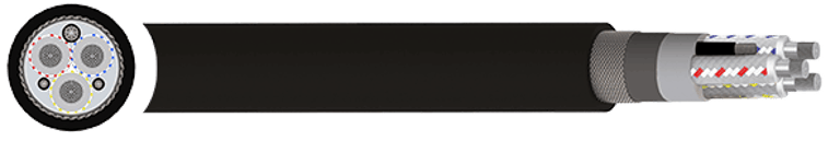 Lay: Each power core individually screened with tinned copper/textile braid, laid up three insulated pilot cores