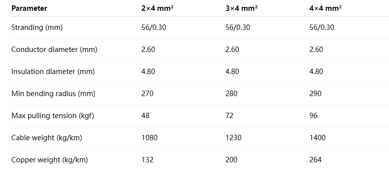 Electrical efficiency: Low DC resistance ensures minimal voltage drop over long trailing lengths.
