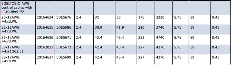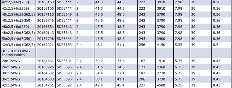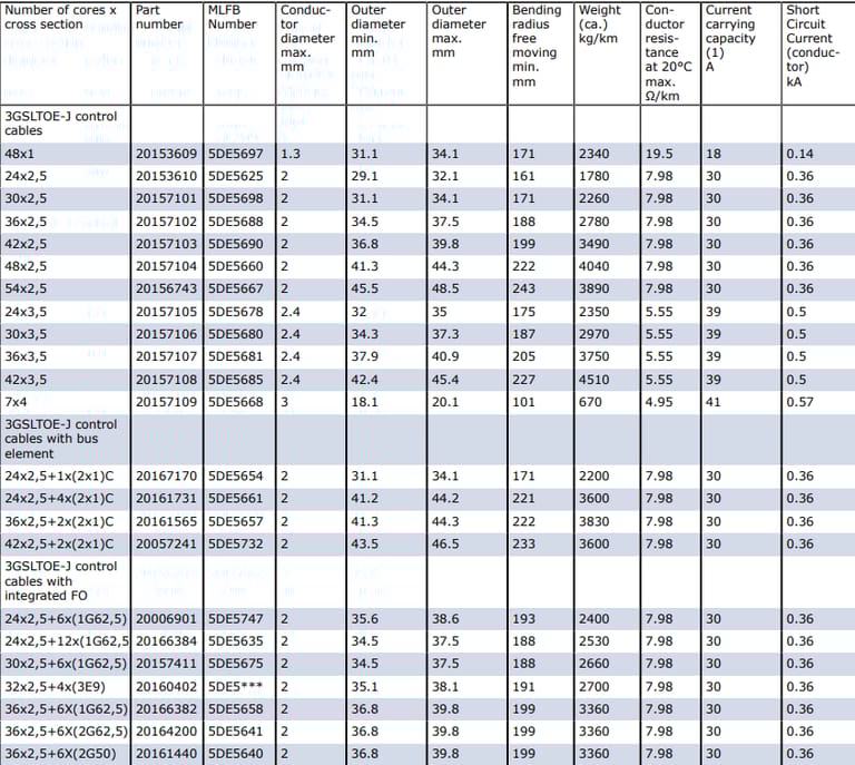 Marking | SPREADERFLEX 3GSLTOE-J (number of cores) x (cross-section) |