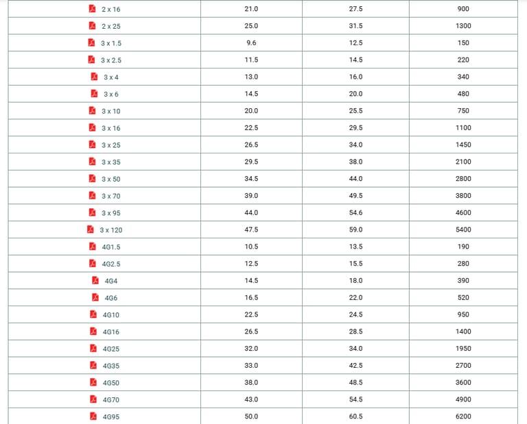 Maximum admissible conductor Temperature in Operation : 90°C