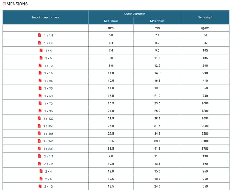 Conductor : Bare copper stranded class 5 to VDE0295, IEC 60228