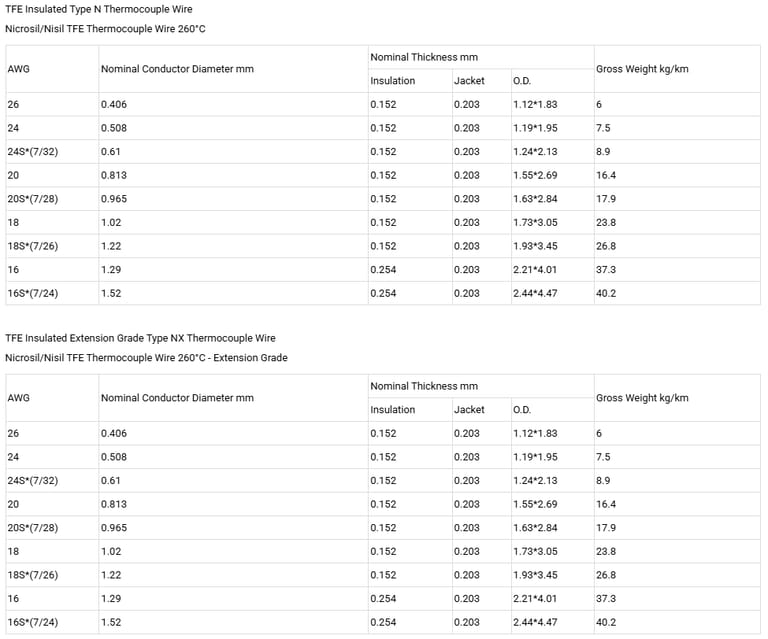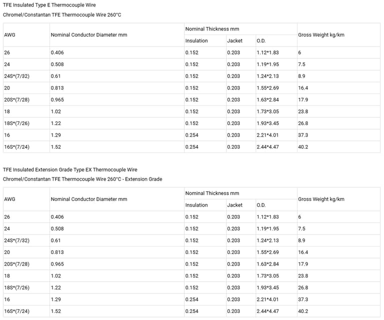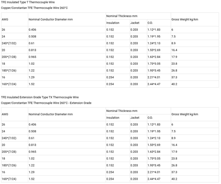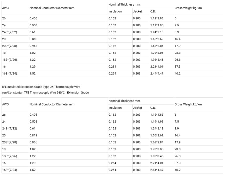 Iron/Constantan TFE Thermocouple Wire 260°C