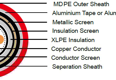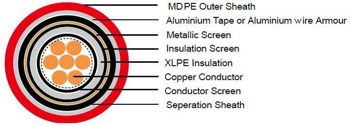 11kV cable, XLPE insulated cable, MDPE sheathed cable, medium-voltage armoured cable, MV power cable