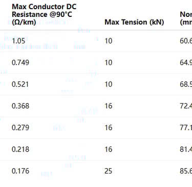 DC resistance at 20°C and 90°C, impacting voltage drop and efficiency.
