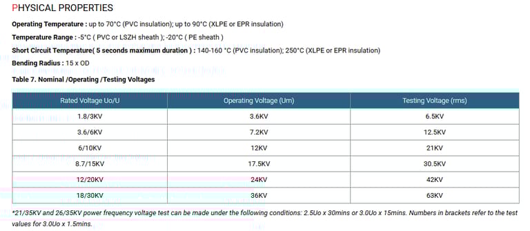 Insulation : Insulation is of polyvinyl chloride (PVC) intended for 1.8/3.6KV and 3.6/6KV cables, cross-linked polyethylene compound (XLPE) or ethylene propylene rubber (EPR/HEPR).