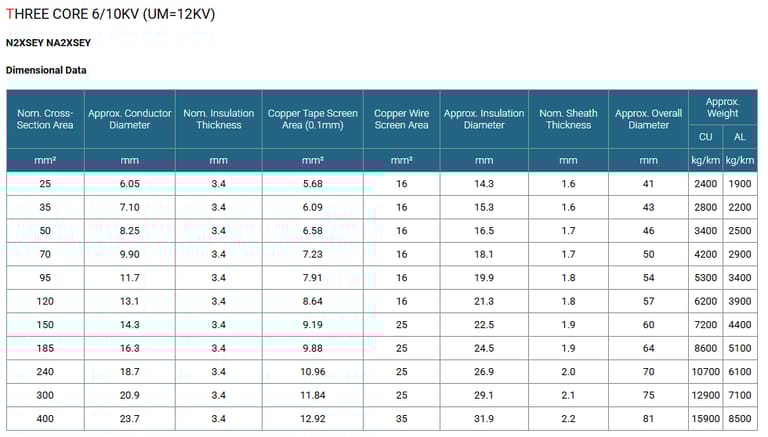 3.6/6KV(Um=7.2KV) | 6/10KV(Um=12KV) | 8.7/15KV(Um=17.5KV) | 12/20KV(Um=24KV) | 18/30KV(Um=36KV) | |