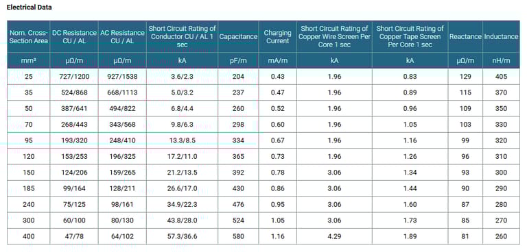 Table 2b. Total Cross Section and Max. DC Resistance of Copper Tape Screen (0.1mm)