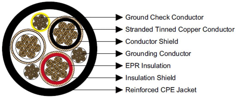 Type SHD-GC Three-Conductor Round Portable Power Cable, CPE Jacket 25kV ICEA S-75-381