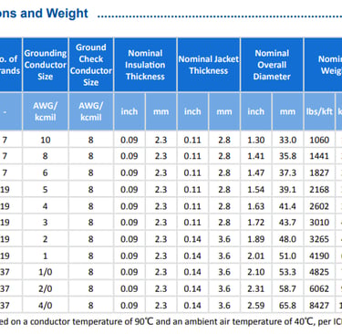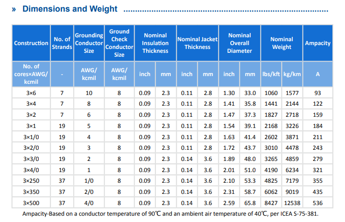 Type MP-GC cables are available in a wide range of sizes, from 3 × 6 AWG to 3 × 500 kcmil, allowing engineers to match cable size precisely to load requirements.