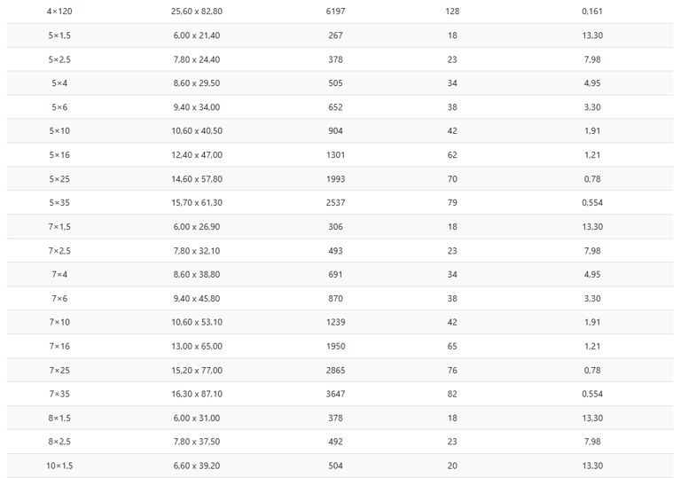 Cross-sections: 1.5 mm² to 120 mm²