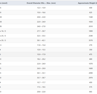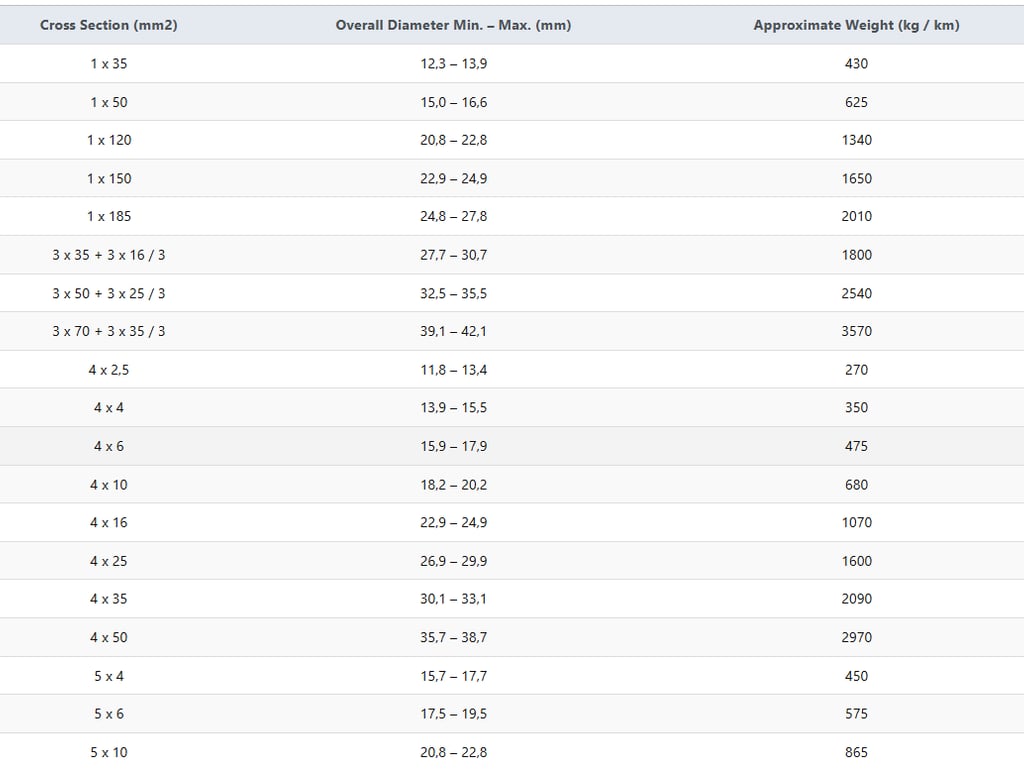 Overall Diameter: The diameter ranges from 12.3 mm to 42.1 mm, depending on the number and size of the conductors.