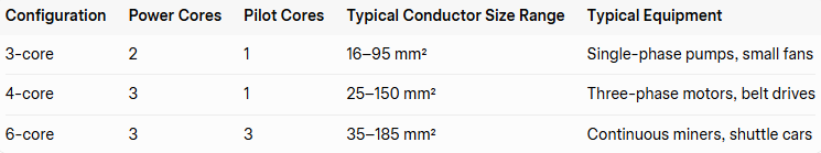 The pilot cores are the unsung heroes of Part 1. They carry low-voltage monitoring signals back to the power centre. If a pilot core is severed or earth leakage exceeds the set limit (typically 100 mA), the protection relay trips the supply within milliseconds – preventing a spark in a gassy environment.