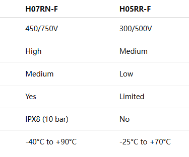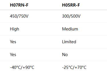 Recommendation: H07RN-F is optimal when flexibility, environmental resilience, and safety compliance are critical.