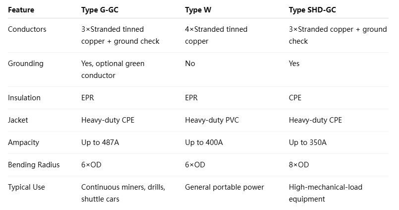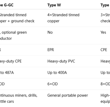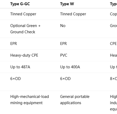 Type G-GC is classified as a three-conductor round portable power cable designed for mobile equipment in underground and surface mining as well as heavy industrial operations. Unlike standard portable cables, it features a grounding conductor and a ground check conductor, making it particularly suited to environments where safety and reliability are non-negotiable.