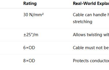 Avoid bending cable tighter than 6×OD (fixed) or 8×OD (moving).