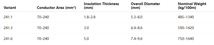 Type 241 Superflex comes in three main variants, differentiated by insulation thickness, conductor size, and voltage rating. Here’s a quick comparison table for reference: