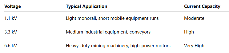 It supports voltage ratings from 1.1 kV to 6.6 kV, maintaining performance in both underground and surface conditions.