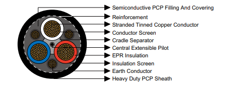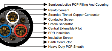 Visual Suggestion: A labeled cross-section showing conductor, insulation, screens, PCP layers, textile reinforcement, and sheath would help readers understand the cable’s construction.