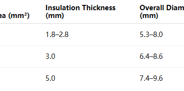 Sheath thickness and overall diameter scale with insulation to provide mechanical protection without compromising flexibility.