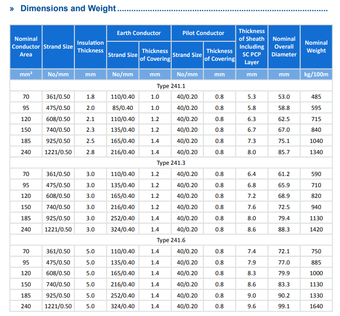 Type 241 Superflex cables are available in a wide range of conductor sizes and insulation options, allowing tailored solutions for different mining and industrial needs.