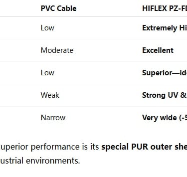 Compared with PVC flexible cables, HIFLEX PZ-FD offers: