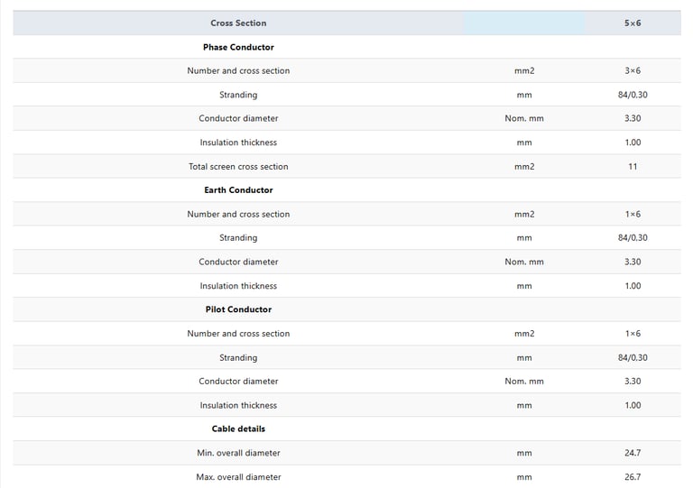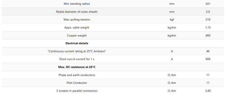 These specifications ensure the cable can withstand frequent movement, bending, and pulling while maintaining electrical integrity.