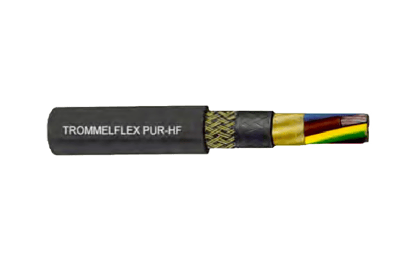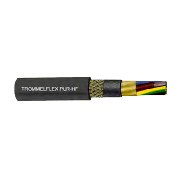 The TROMMELFLEX PUR-HF shines in applications demanding flexibility under stress: Reeling systems for cranes, hoists, conveyors, and mobile equipment. It's suited for indoor/outdoor, dry/damp, and even explosive atmospheres, thanks to its flame retardant and halogen-free traits.