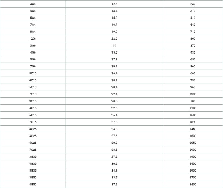 CONSTRUCTION | NOMINAL OVERALL DIAMETER | NOMINAL WEIGHT |